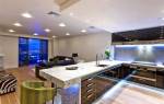 Если в столовой зоне небольшой кухни необходимо создать заполненность мягким светом, то используются закрытые люстры, в основном потолочные (тарелка). Для освещения большого пространства применимы открытые люстры: лампы располагаются в кованном каркасе открыто, без плафонов.