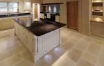 Керамогранитные бордюры используются в сочетании с кухонными фартуками из того же материала, а также иногда устанавливаются на столешницах из акрилового или кварцевого камня. Они обладают высокой гигиеничностью, устойчивы к ударам, не подвержены царапинам и образованию пятен. Кроме того, керамогранит отличается жаростойкостью и долговечностью.